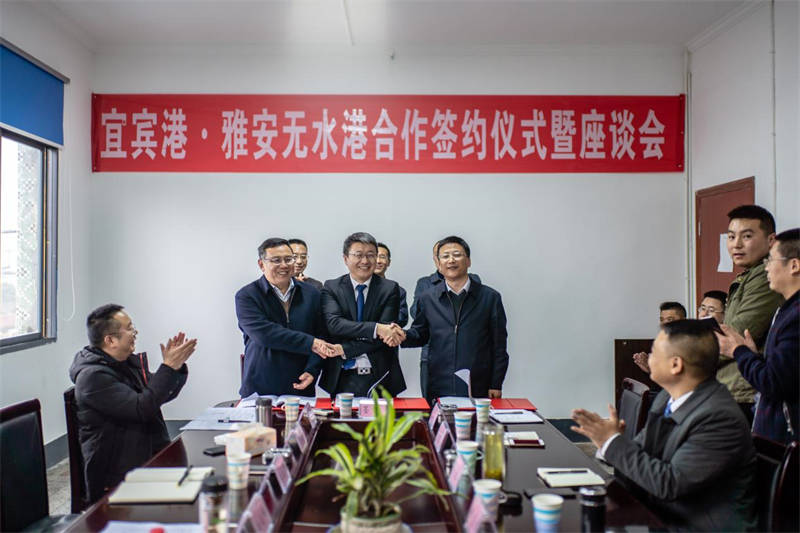 在簽約儀式上,雅安交建集團、四川宜賓港集團、中鐵聯(lián)集成都分公司共同簽署三方戰(zhàn)略合作協(xié)議,三方就“公、水、鐵”多式聯(lián)運以及倉儲運輸、甩掛運輸、集裝箱運輸、城市配送、零擔運輸?shù)榷喾N業(yè)務開展深度合作。四川宜賓港集團還分別和雅化實業(yè)集團、寶興漢白玉石材協(xié)會、蘆山縣紡織協(xié)會等企業(yè)、協(xié)會進行了戰(zhàn)略合作簽約。通過借助宜賓港·雅安無水港幫助本地企業(yè)打通外向通道,降低物流運輸成本,改善物流運輸體系。