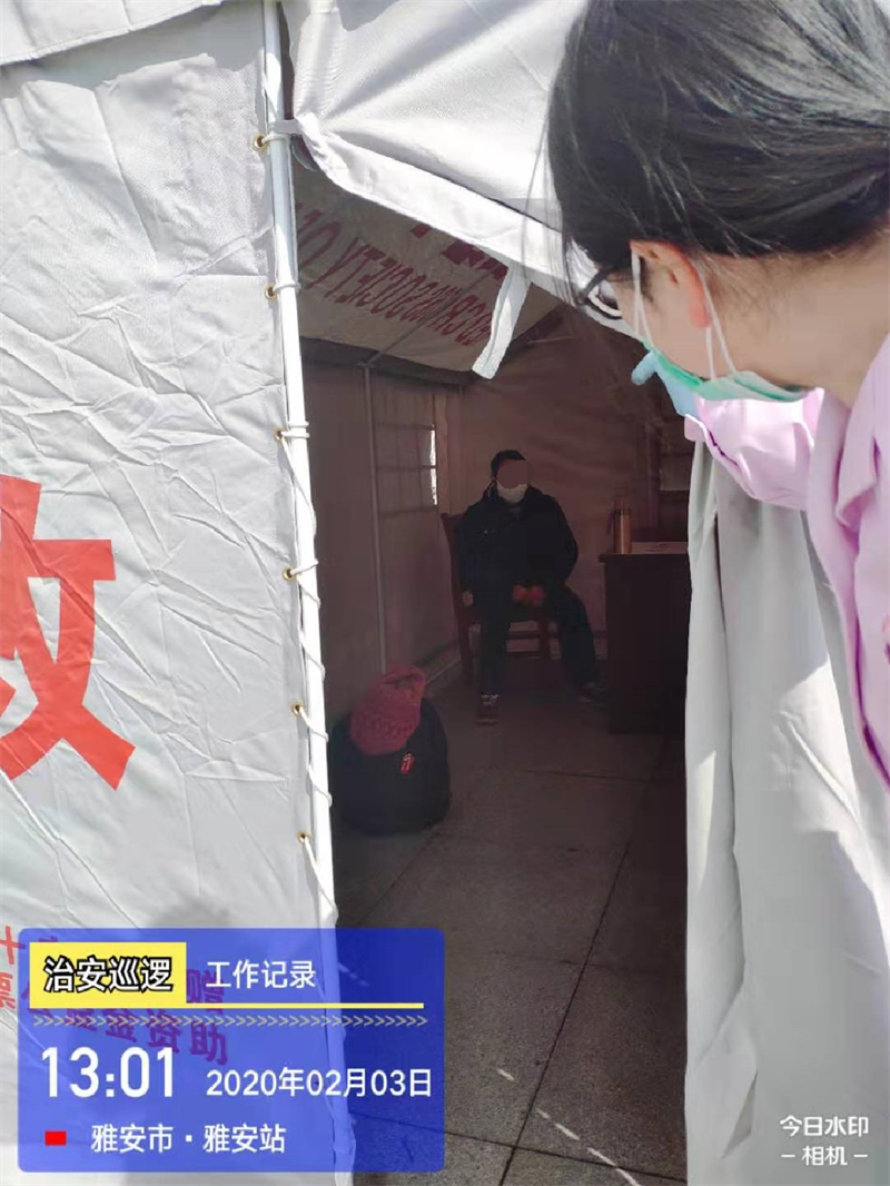 2 月3日中午1點(diǎn)左右,雅安火車站內(nèi)響起一陣急促的警報(bào)聲。幾分鐘后,雅安火車站工作人員、雨城區(qū)姚橋衛(wèi)生院醫(yī)護(hù)人員將一名張姓婦女從雅安火車站入站口帶出,送至運(yùn)通公司在雅安火車站出站口設(shè)置的隔離區(qū)。