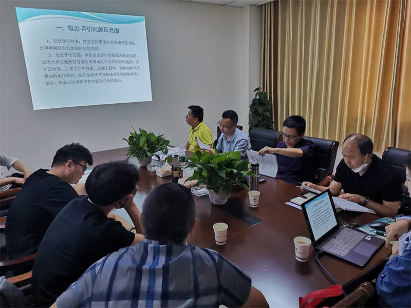 會上,專家們認真聽取了安全預評編制單位的詳細匯報,對雨城區(qū)大興加油加氣站的選址、總平面布置、主要工藝和設施、公輔工程等進行評審,并提出了審查意見。