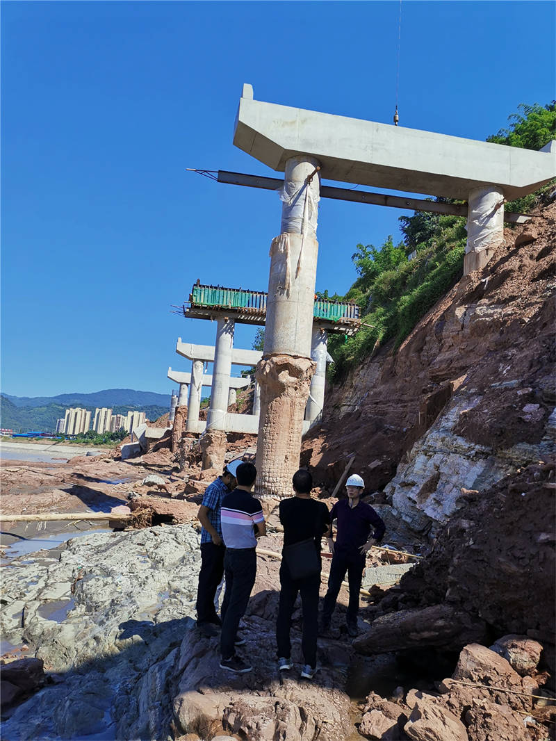 8月26日,項(xiàng)目公司邀請西南交通大學(xué)結(jié)構(gòu)專家到省道104線草壩至姚橋段、草壩青衣江大橋(茶地坎碼頭渡改橋)、多營青衣江大橋(搭溝漩碼頭渡改橋)等涉水工程項(xiàng)目進(jìn)行現(xiàn)場踏勘,檢查橋梁墩臺、防護(hù)工程結(jié)構(gòu)等情況,并就相關(guān)項(xiàng)目安全狀況及結(jié)構(gòu)物的加固提出了專業(yè)意見。