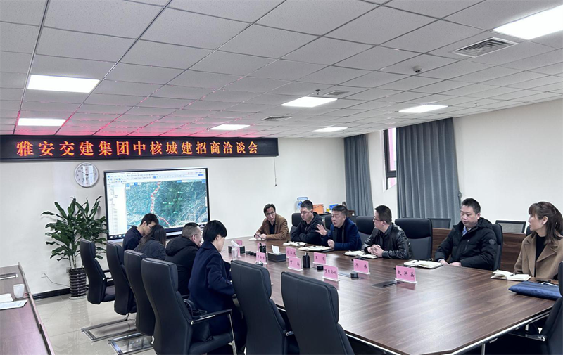 中核城建公司副總經(jīng)理兼市場開發(fā)部經(jīng)理王強(qiáng)、總經(jīng)理助理楊磊,雅安交建集團(tuán)副總經(jīng)理丁春,以及雙方相關(guān)部門負(fù)責(zé)人參洽談。