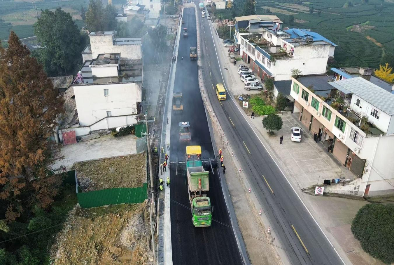 國道318線名山區(qū)黑竹(成都界)至雨城區(qū)多營段改建項目作為四川省重點項目,同時也是雅安“三區(qū)”同城化經濟環(huán)線中北環(huán)線的重要組成部分,自開工以來始終保持高效推進態(tài)勢。為實現(xiàn)2026年春節(jié)前主體工程貫通目標,近期,項目建設現(xiàn)場掀起“大干快上”熱潮,全體參建單位以“時不我待”的緊迫感沖刺節(jié)點任務,各項工作取得突破性進展。截至目前,項目累計完成投資24.95億元,完成產值17.6億元;路基、橋涵、隧道工程均完成90%以上,陸續(xù)進入路面工程階段,前12公里改建段已建成通車。