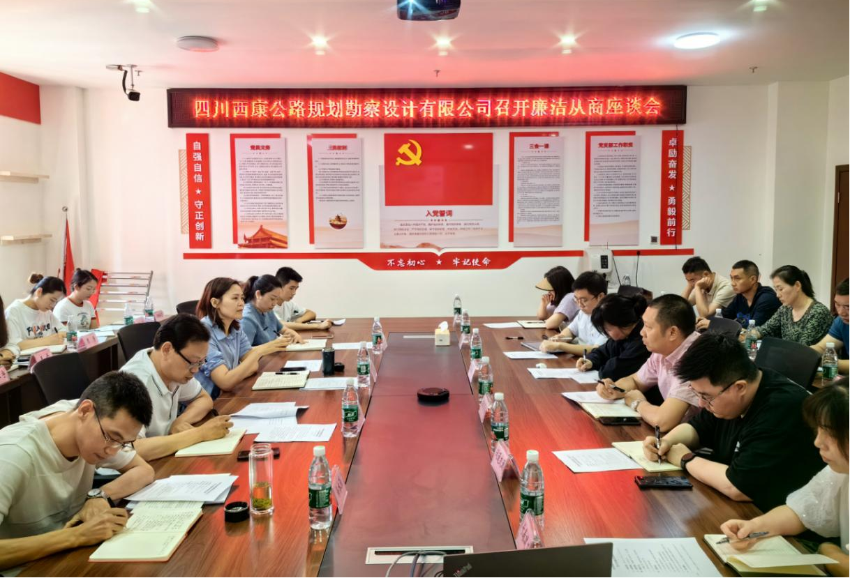 為弘揚清風正氣,共建“親清”統(tǒng)一的企商關系,共筑廉潔自律反腐防線,營造更加優(yōu)良的發(fā)展環(huán)境。5月24日,雅安交建集團西康設計公司召開廉潔從商座談會,22家合作商、供應商應邀參加,集團黨委委員、副總經(jīng)理丁春出席會議并作重要講話,公司黨支部書記、執(zhí)行董事何銘新主持會議,公司全體中層干部參加會議。