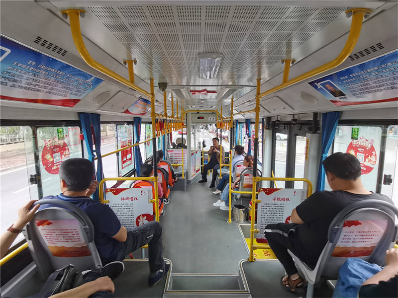 13路公交線路連接雨城區(qū)東西方向,客流量充足,群眾覆蓋范圍廣。雅安交建集團依托車頭、車廂文化,通過圖片、展板等形式,圖文并茂、簡明扼要介紹“五四”精神、“紅船精神”、“井岡山精神”、“強渡大渡河”、“飛奪瀘定橋”、“翻越夾金山”、“延安精神”等紅色主題,成為一道流動的文明風景線。乘坐在13路“紅色公交”車上,乘客可了解黨的光輝故事,重溫中國共產(chǎn)黨波瀾壯闊的輝煌歷程,更多的參與到黨史學習教育中來,在乘車的短暫時光中學有所得、學有所思、學有所悟。