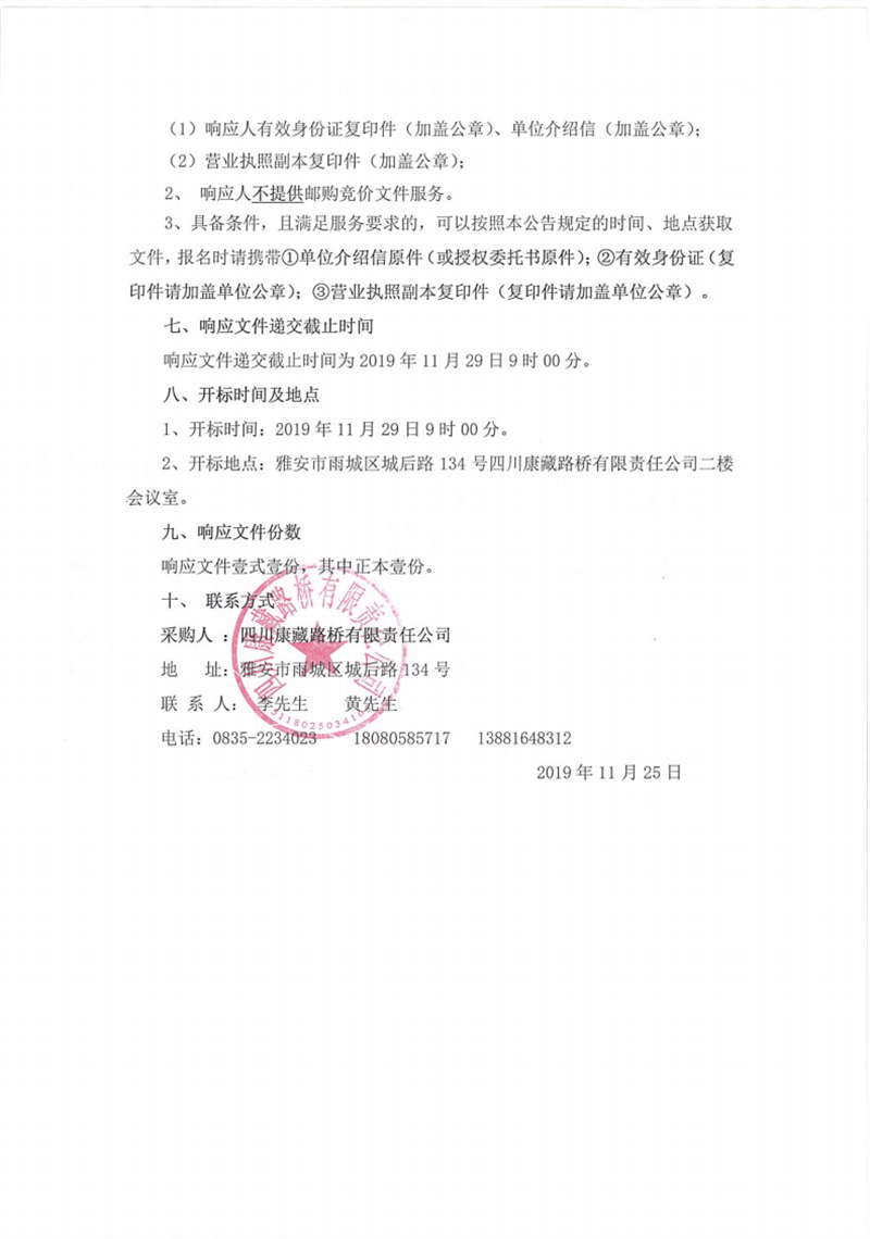 四川康藏路橋有限責(zé)任公司蘆山縣龍門、大川等8個(gè)鄉(xiāng)鎮(zhèn)基礎(chǔ)設(shè)施恢復(fù)提升工程項(xiàng)目施工勞務(wù)競價(jià)公告
