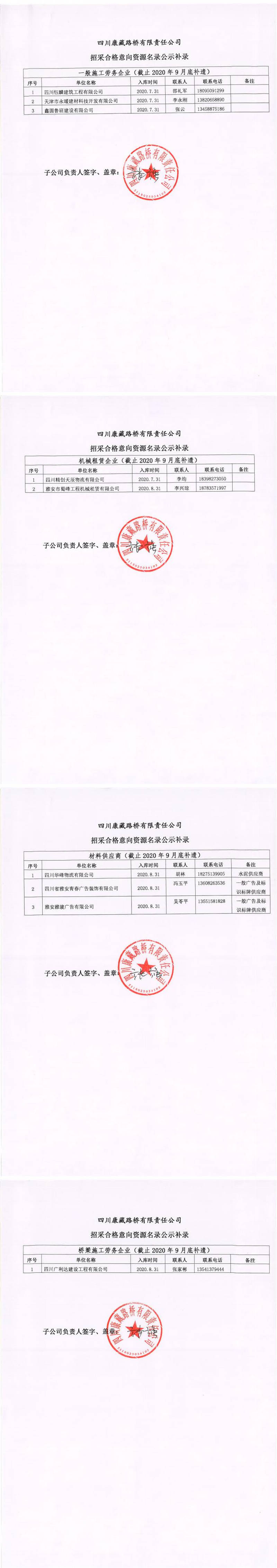 四川康藏路橋有限責(zé)任公司招采合格意向資源名錄公示補錄