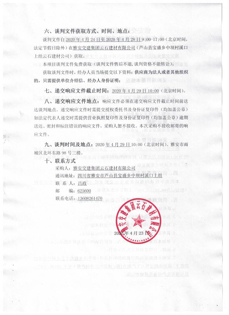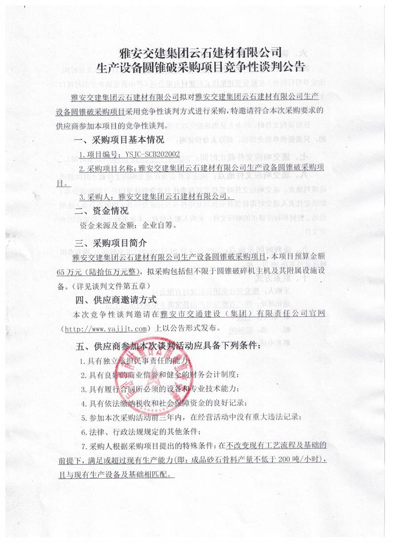 雅安交建集團(tuán)云石建材有限公司生產(chǎn)設(shè)備圓錐破采購項目競爭性談判公告