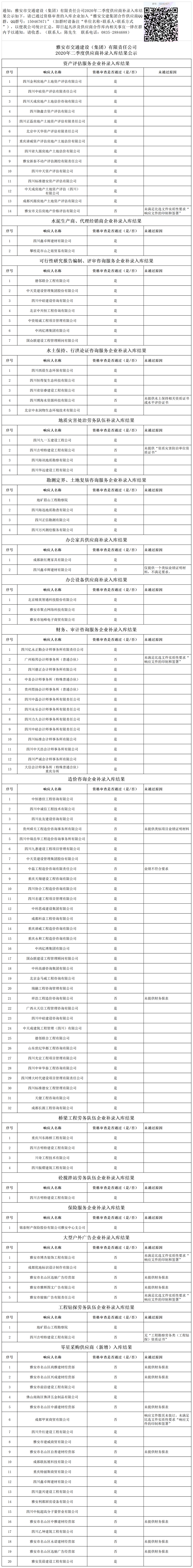 雅安市交通建設(集團)有限責任公司2020年二季度供應商補錄入庫結(jié)果公示
