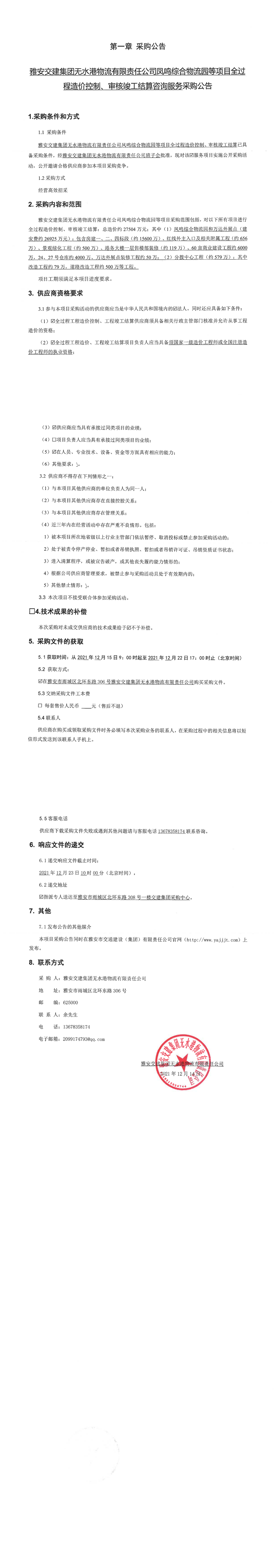 雅安交建集團無水港物流有限責任公司鳳鳴綜合物流等項目全過程造價控制、審核竣工結(jié)算咨詢服務(wù)采購公告