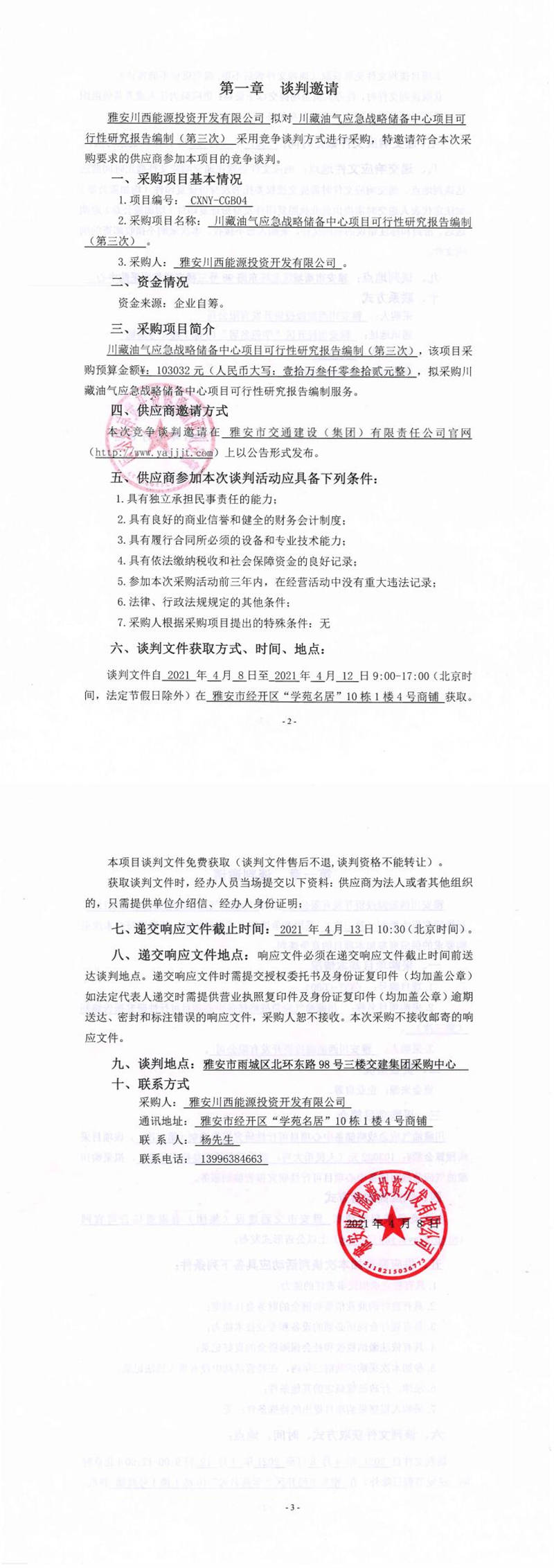雅安川西能源投資開發(fā)有限公司川藏油氣應(yīng)急戰(zhàn)略儲(chǔ)備中心項(xiàng)目可行性研究報(bào)告編制(第三次)競爭談判公告