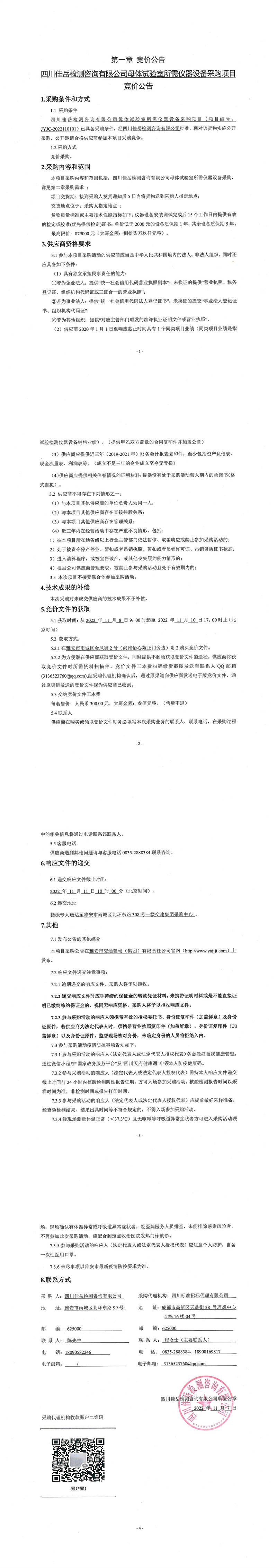 四川佳岳檢測咨詢有限公司母體試驗室所需儀器設備采購項目采購公告