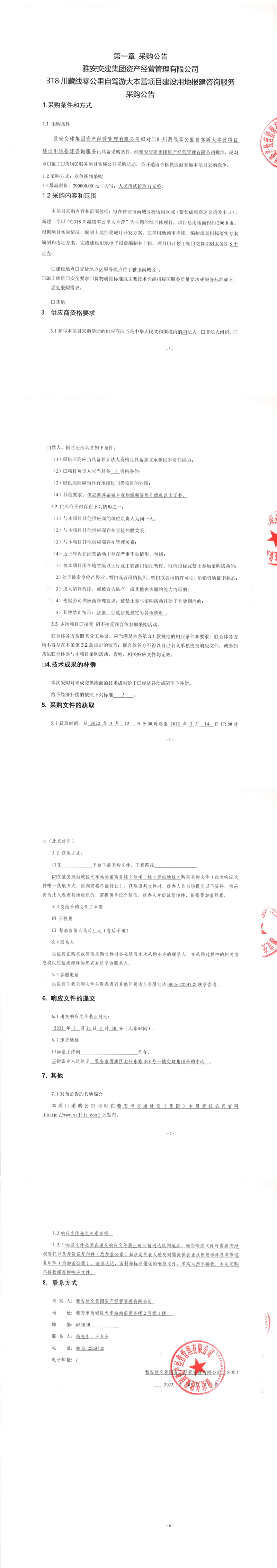 雅安交建集團(tuán)資產(chǎn)經(jīng)營管理有限公司318.川藏線零公里自駕游大本營項目建設(shè)用地報建咨詢服務(wù)采購公告