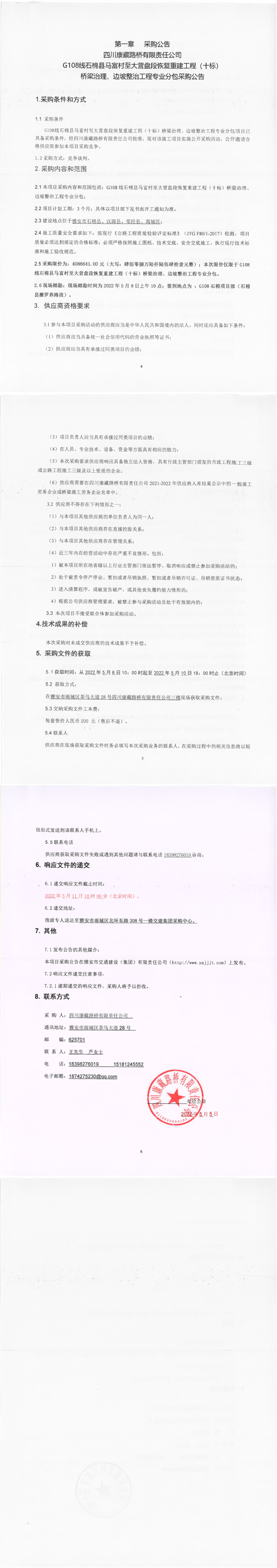 四川康藏路橋有限責(zé)任公司G108線石棉縣馬富村至大營盤段恢復(fù)重建工程(十標)橋梁治理、邊坡整治工程專業(yè)分包采購公告