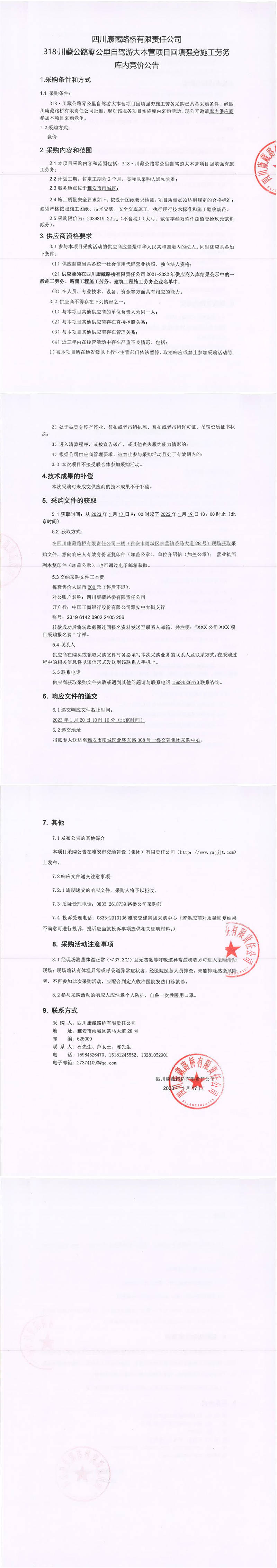 四川康藏路橋有限責(zé)任公司S431蘆山縣龍門至雙石段改建工程項目邊坡防護工程施工勞務(wù)采購競爭談判結(jié)果公示