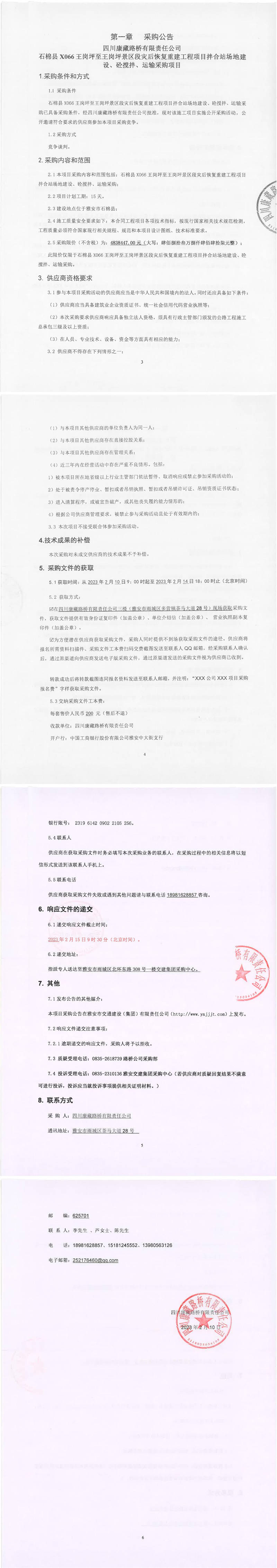 四川康藏路橋有限責(zé)任公司石棉縣X066王崗坪至王崗坪景區(qū)段災(zāi)后恢復(fù)重建工程項(xiàng)目拌合站場地建設(shè)、砼攪拌、運(yùn)輸采購項(xiàng)目采購公告