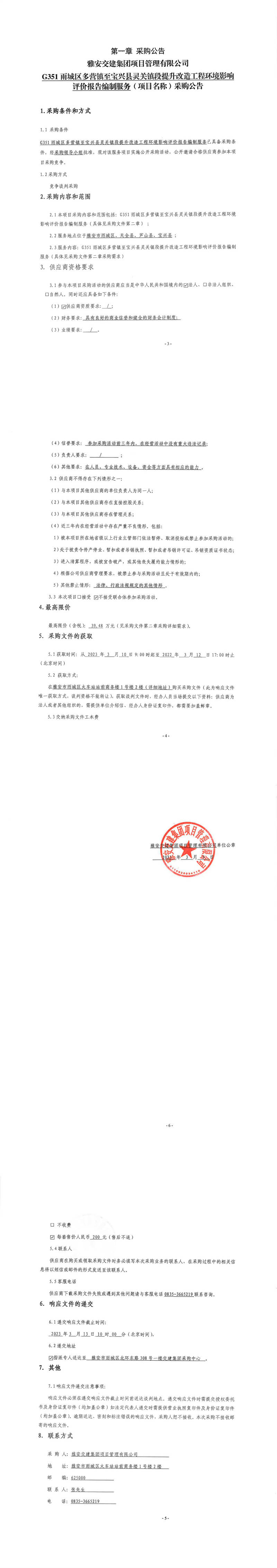 雅安交建集團項目管理有限公司G351雨城區(qū)多營鎮(zhèn)至寶興縣靈關(guān)鎮(zhèn)段提升改造工程環(huán)境影響評價報告編制服務(項目名稱)采購公告