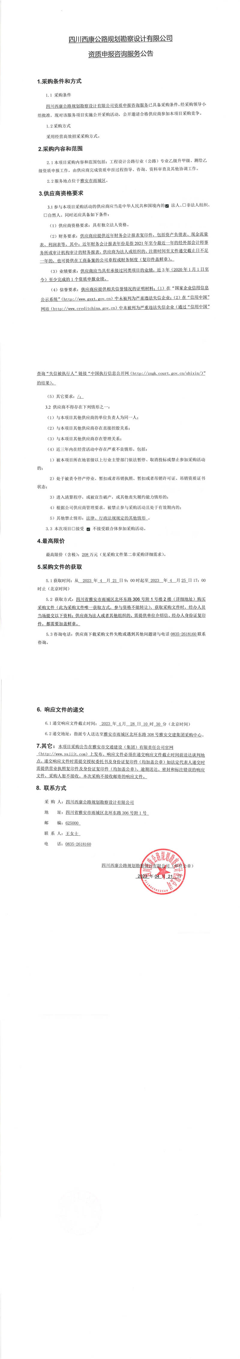 四川西康公路規(guī)劃勘察設計公司在建項目鉆探勞務競價公告