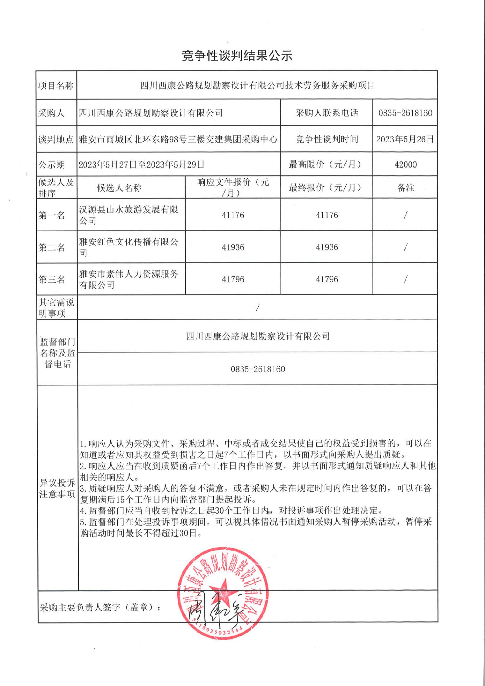四川西康公路規(guī)劃勘察設(shè)計有限公司技術(shù)勞務(wù)服務(wù)采購結(jié)果公示