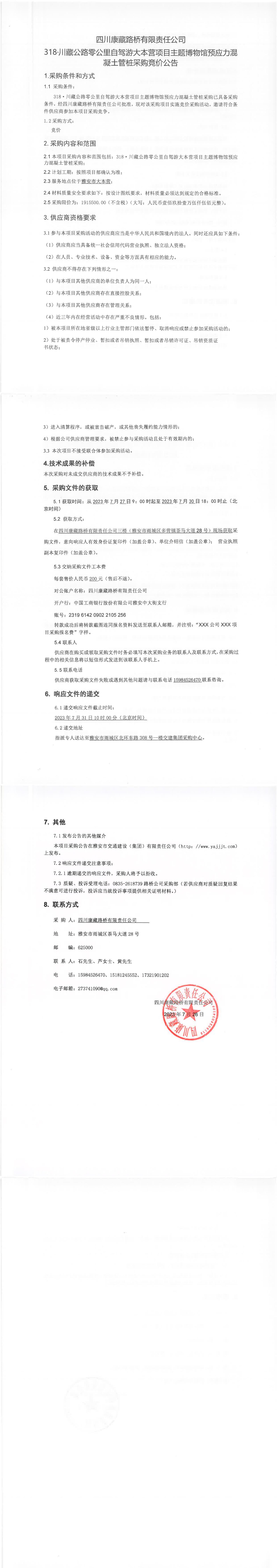 四川康藏路橋有限責(zé)任公司318·川藏公路零公里自駕游大本營(yíng)項(xiàng)目主題博物館預(yù)應(yīng)力混凝土管樁采購(gòu)競(jìng)價(jià)公告