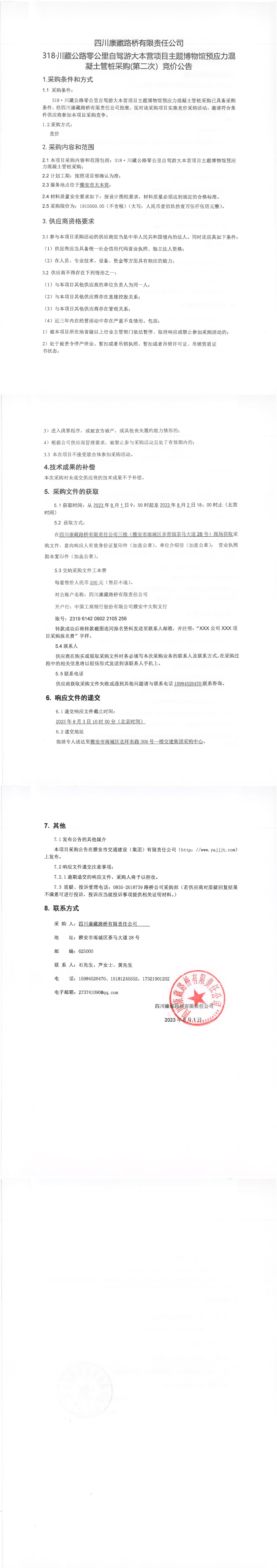 四川康藏路橋有限責任公司國道318名山區(qū)黑竹(成都界)至雨城區(qū)多營段改建工程壓漿料采購公告