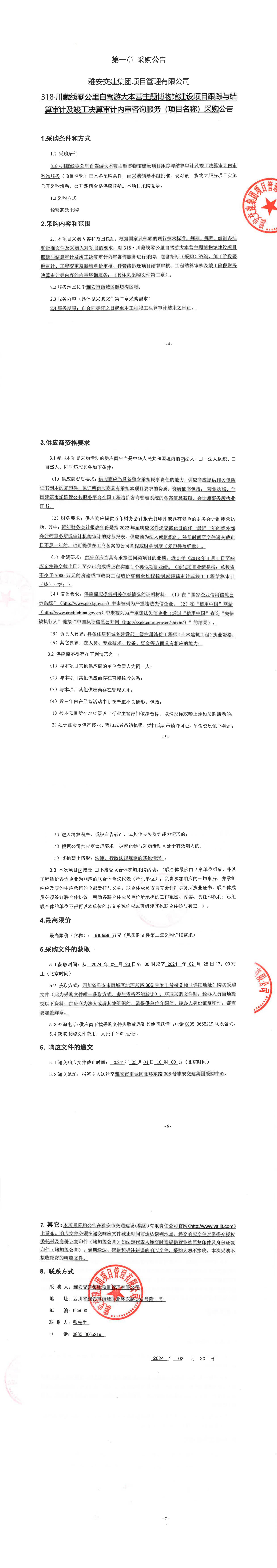 雅安交建集團(tuán)項(xiàng)目管理有限公司318·川藏線零公里自駕游大本營主題博物館建設(shè)項(xiàng)目跟蹤與結(jié)算審計(jì)及竣工決算審計(jì)內(nèi)審咨詢服務(wù)采購公告