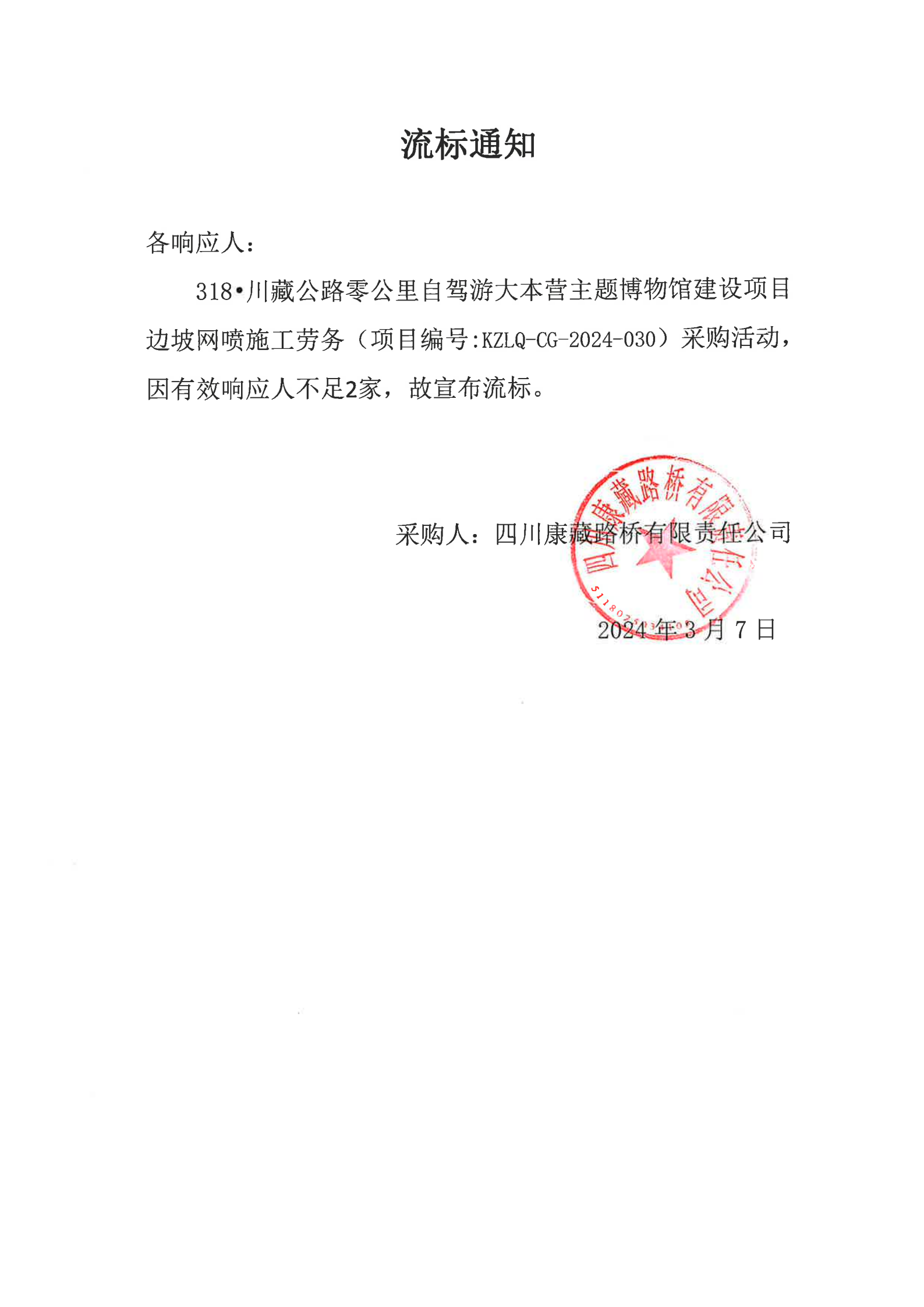 四川康藏路橋有限責任公司318·川藏公路零公里自駕游大本營主題博物館建設(shè)項目邊坡網(wǎng)噴施工勞務流標通知