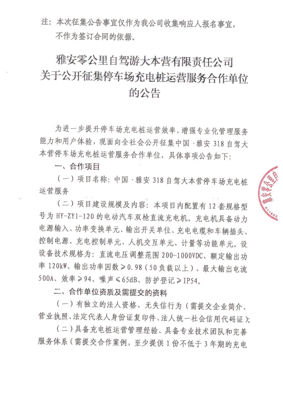 關(guān)于公開征集停車場(chǎng)充電樁運(yùn)營(yíng)服務(wù)合作單位的公告
