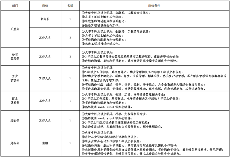 雅安交建集團(tuán)運(yùn)通貿(mào)易有限公司是雅安市重點(diǎn)國(guó)有企業(yè)雅安市交建集團(tuán)下屬子公司。根據(jù)公司發(fā)展需要,決定面向社會(huì)公開招聘9名工作人員,現(xiàn)將有關(guān)事項(xiàng)公告如下:
