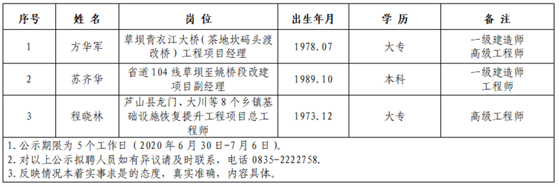 根據(jù)四川康藏路橋有限責(zé)任公司考察聘任專業(yè)技術(shù)人才實(shí)施方案,經(jīng)公司研究,現(xiàn)將以下擬聘用人員予以公示: