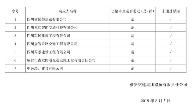 雅安交建集團(tuán)路橋有限責(zé)任公司公路安全設(shè)施施工企業(yè)入庫比選結(jié)果