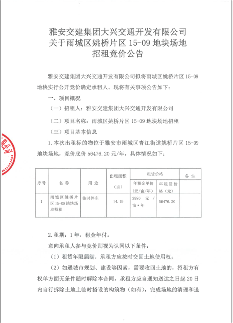 大興公司 姚橋15-09地塊租賃 招租公告附件