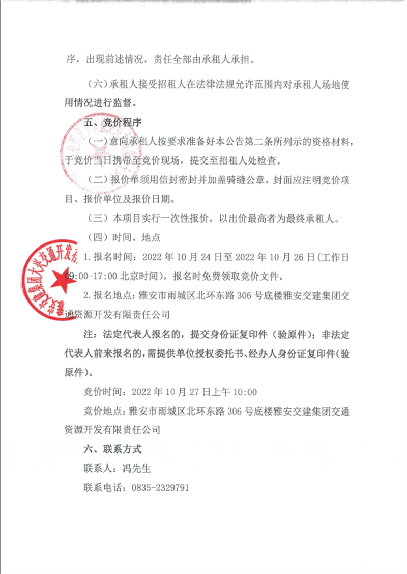 雅安交建集團(tuán)無(wú)水港物流有限責(zé)任公司關(guān)于雅安市鳳鳴綜合物流園資產(chǎn)公開招租的公告