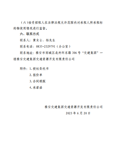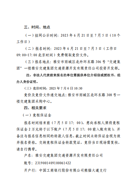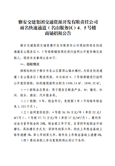 雅安交建集團(tuán)交通資源開發(fā)有限責(zé)任公司雨名快速通道(名山服務(wù)區(qū))4、5號(hào)樓招租公告附件