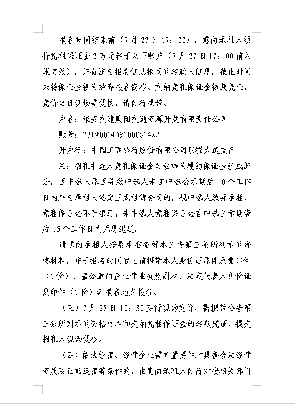 雅安交建集團(tuán)交通資源開發(fā)有限責(zé)任公司雨名快速通道名山服務(wù)區(qū)場(chǎng)地(游樂類項(xiàng)目)招租公告