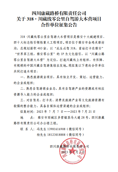 四川康藏路橋有限責任公司關于318.自駕大本營合作單位征集公告