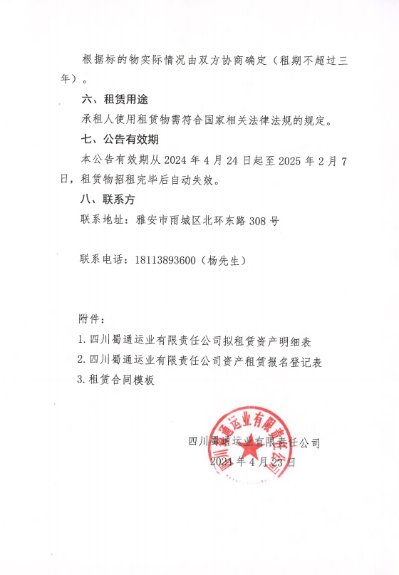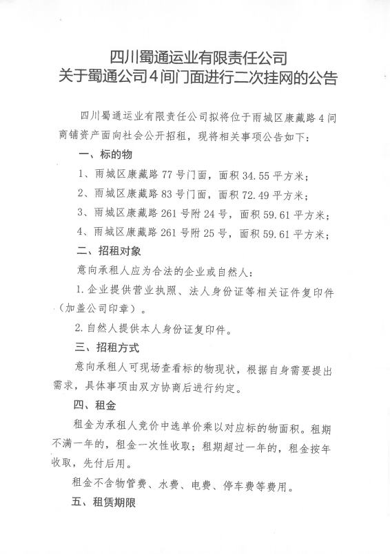 四川蜀通運業(yè)有限責(zé)任公司關(guān)于蜀通公司4間門面進行二次掛網(wǎng)的公告附件