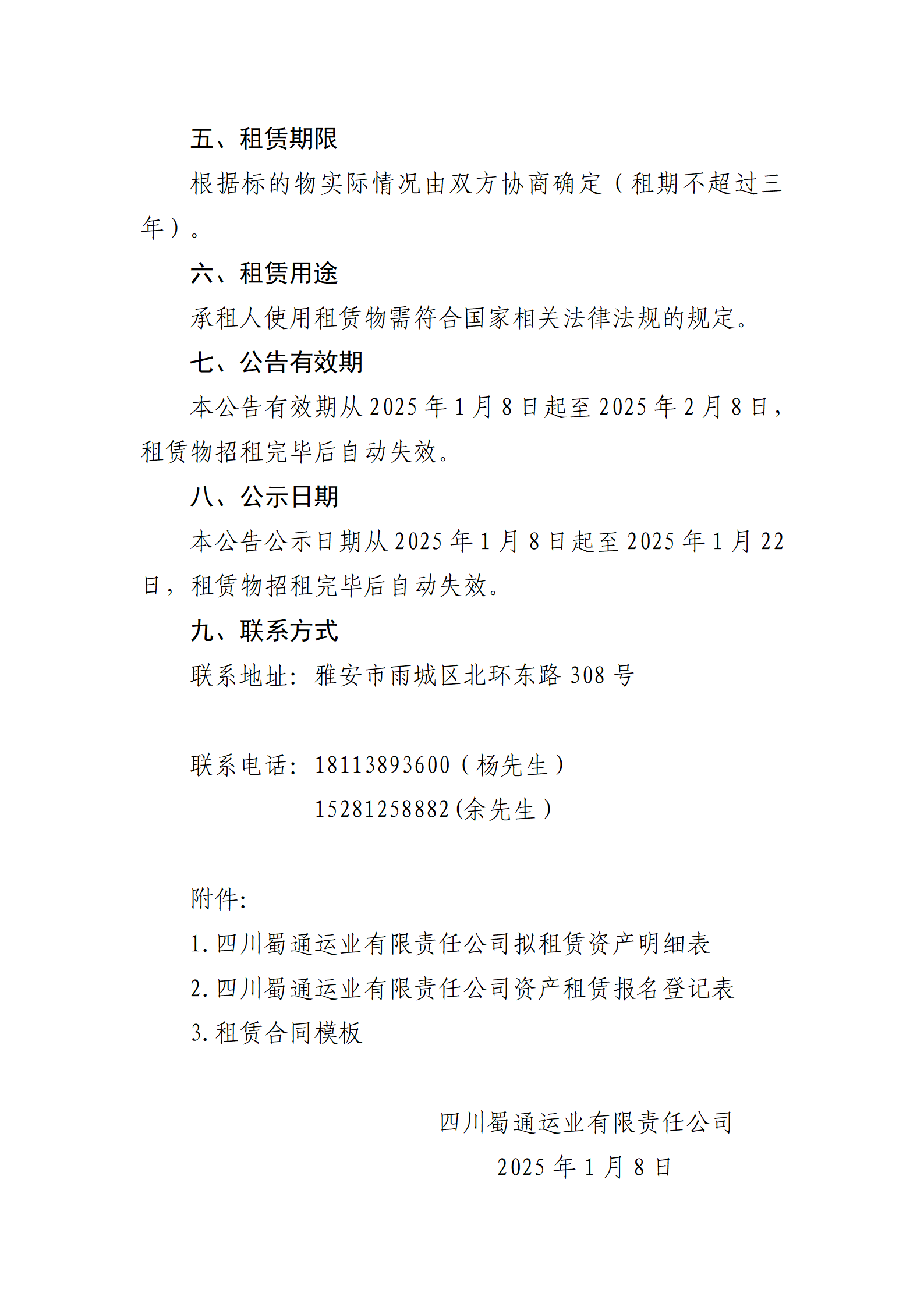四川蜀通運業(yè)有限責任公司 關于寶興縣沿江路140號、穆坪南街16號、18號三間商鋪進行掛網招租的公告