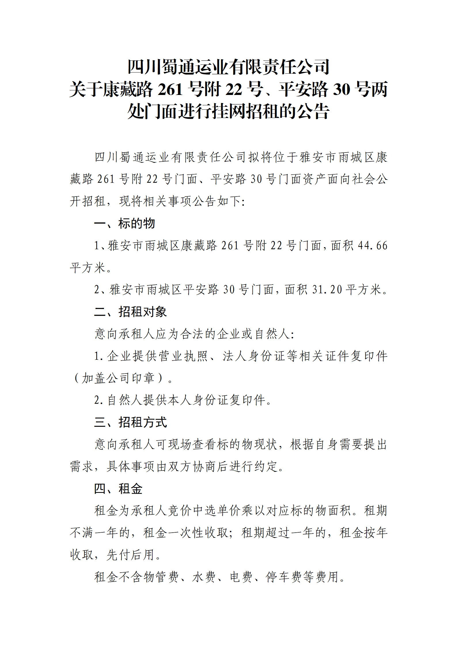 ËÄ´¨Êñͨß\(y¨´n)˜I(y¨¨)ÓÐÏÞØŸ(z¨¦)Èι«Ë¾ êP(gu¨¡n)ÓÚ¿µ²ØÂ·261Ì–¸½22Ì–¡¢Æ½°²Â·30Ì–ƒÉÌŽéTÃæßM(j¨¬n)ÐÐ’ì¾W(w¨£ng)ÕÐ×âµÄ¹«¸æ