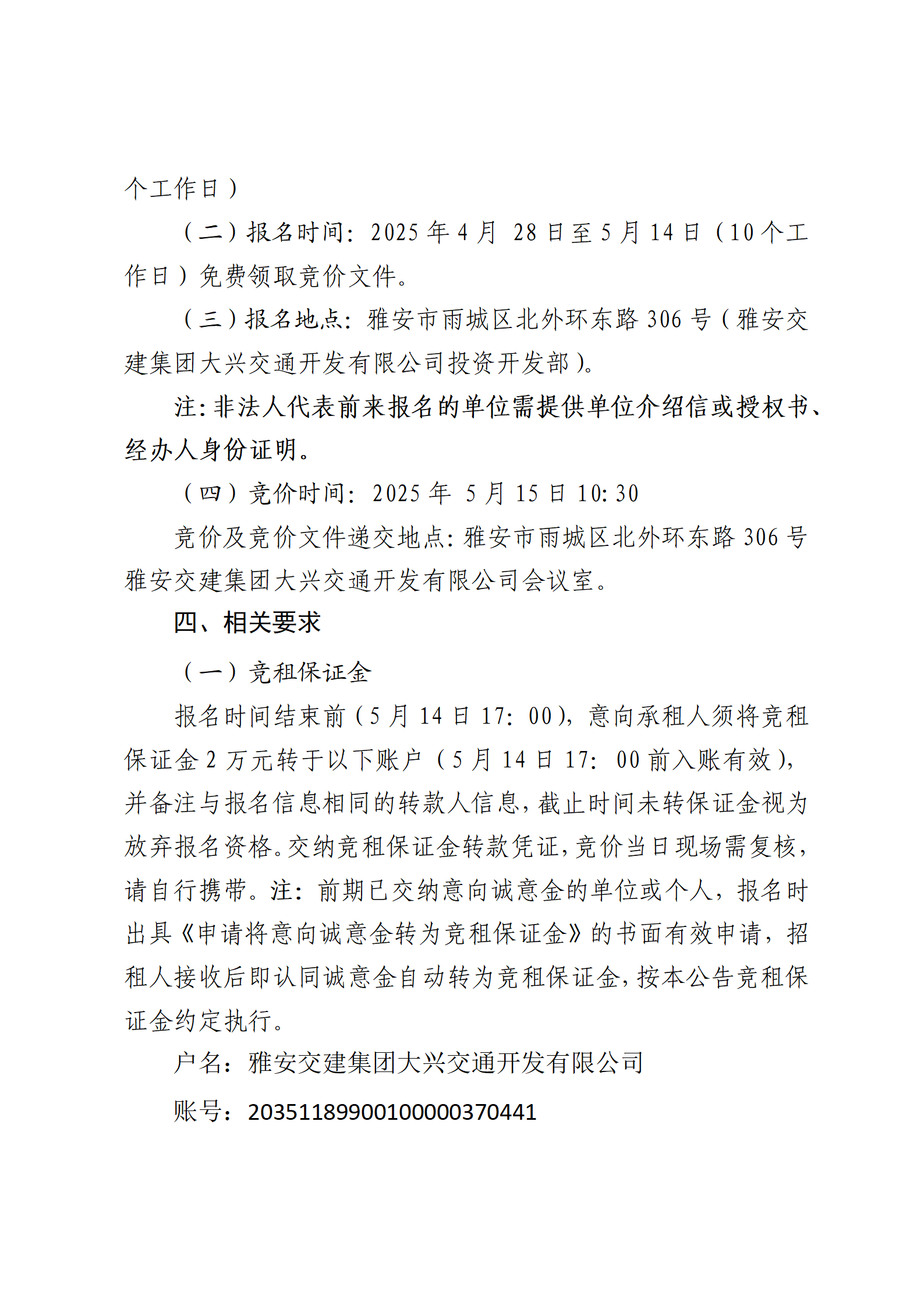 雅安交建集團(tuán)大興交通開發(fā)有限公司 雅安市城市綜合停車場水中壩綜合停車場及配套用房招租公告