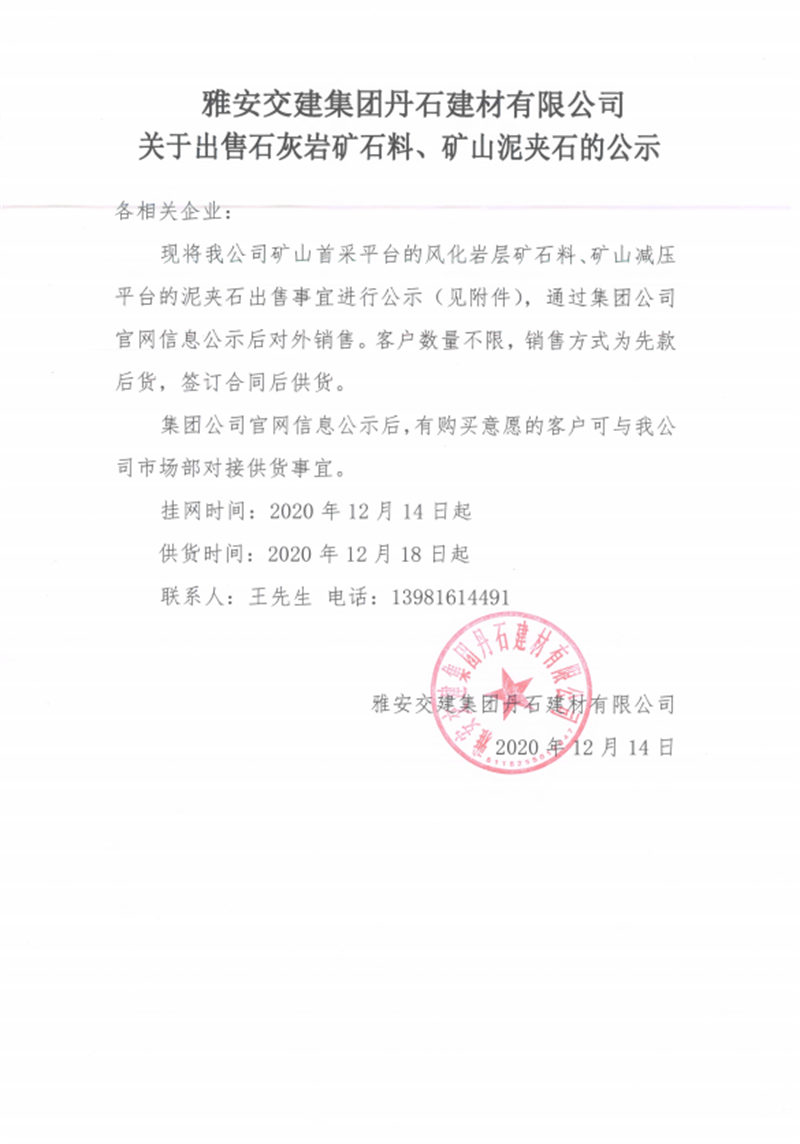 ÑŰ²½»½¨¼¯ˆFµ¤Ê¯½¨²ÄÓÐÏÞ¹«Ë¾êPÓÚ³öÊÛʯ»Ò?gu¨©)rµVɽÁÏ¡¢µVɽÄàŠAʯµÄ¹«Ê¾