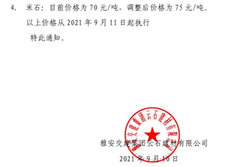 ÑŰ²½»½¨¼¯ˆF(tu¨¢n)µ¤Ê¯¹«Ë¾êP(gu¨¡n)ÓÚÕ{(di¨¤o)ÕûïL(f¨¥ng)»¯Ê¯»Ò?gu¨©)rµVʯÁÏäNÊÛƒr(ji¨¤)¸ñµÄ֪ͨ