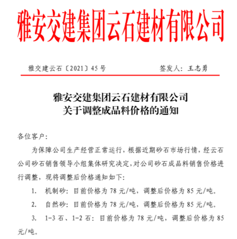 ÑŰ²½»½¨¼¯ˆF(tu¨¢n)ÔÆÊ¯¹«Ë¾êP(gu¨¡n)ÓÚÕ{(di¨¤o)Õû³ÉÆ·ÁÏäNÊÛƒr(ji¨¤)¸ñµÄ֪ͨ£¨2021.11.4£©