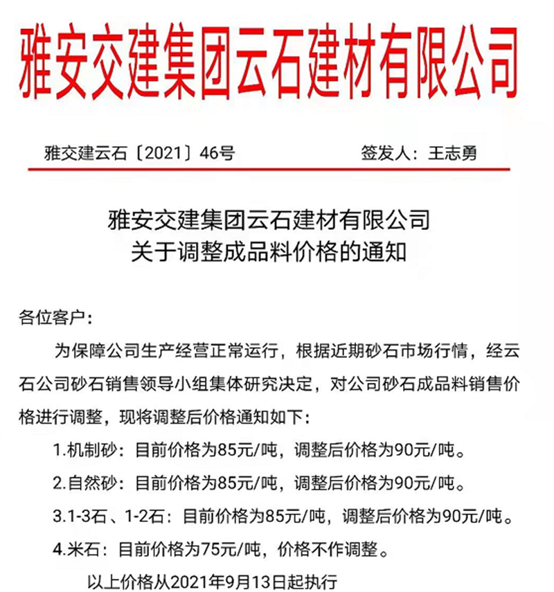 ÑŰ²½»½¨¼¯ˆFÔÆÊ¯¹«Ë¾êPÓÚÕ{(di¨¤o)Õû³ÉÆ·ÁÏäNÊÛƒr¸ñµÄ֪ͨ£¨2021.9.13£©