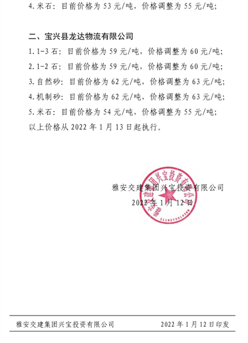 ÑŰ²½»½¨¼¯ˆFµ¤Ê¯¹«Ë¾êP(gu¨¡n)ÓÚÕ{(di¨¤o)Õûɰʯ³ÉÆ·¹ÇÁÏäNÊÛƒr¸ñµÄ֪ͨ£¨2022.1.5£©