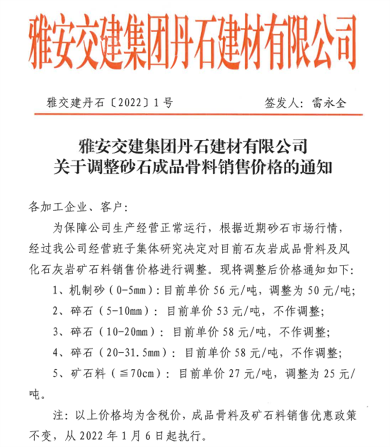 ÑŰ²½»½¨¼¯ˆFµ¤Ê¯¹«Ë¾êPÓÚÕ{Õûɰʯ³ÉÆ·¹ÇÁÏäNÊÛƒr¸ñµÄ֪ͨ£¨2022.1.5£©