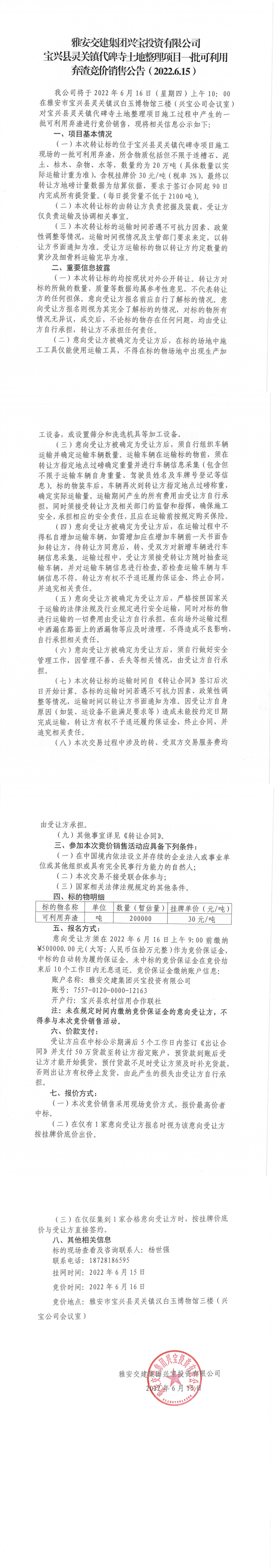 ÑŰ²½»½¨¼¯ˆF(tu¨¢n)ÅdŒšÍ¶ÙYÓÐÏÞ¹«Ë¾ŒšÅd¿hì`êP(gu¨¡n)æ‚(zh¨¨n)´ú±®ËÂÍÁµØÕûÀíí—(xi¨¤ng)Ä¿-Åú¿ÉÀûÓà —‰Ôü¸‚ƒr(ji¨¤)äNÊÛ¹«¸æ( 2022.6.15 )