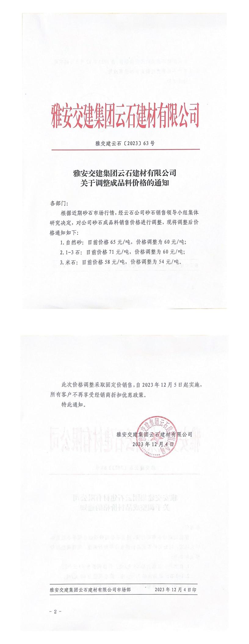 ÑŰ²½»½¨¼¯ˆF(tu¨¢n)ÔÆÊ¯½¨²ÄÓÐÏÞ¹«Ë¾³ÉÆ·ÁÏäN(xi¨¡o)ÊÛƒr(ji¨¤)¸ñÕ{(di¨¤o)Õû¹«¸æ£¨2023-12-04£©