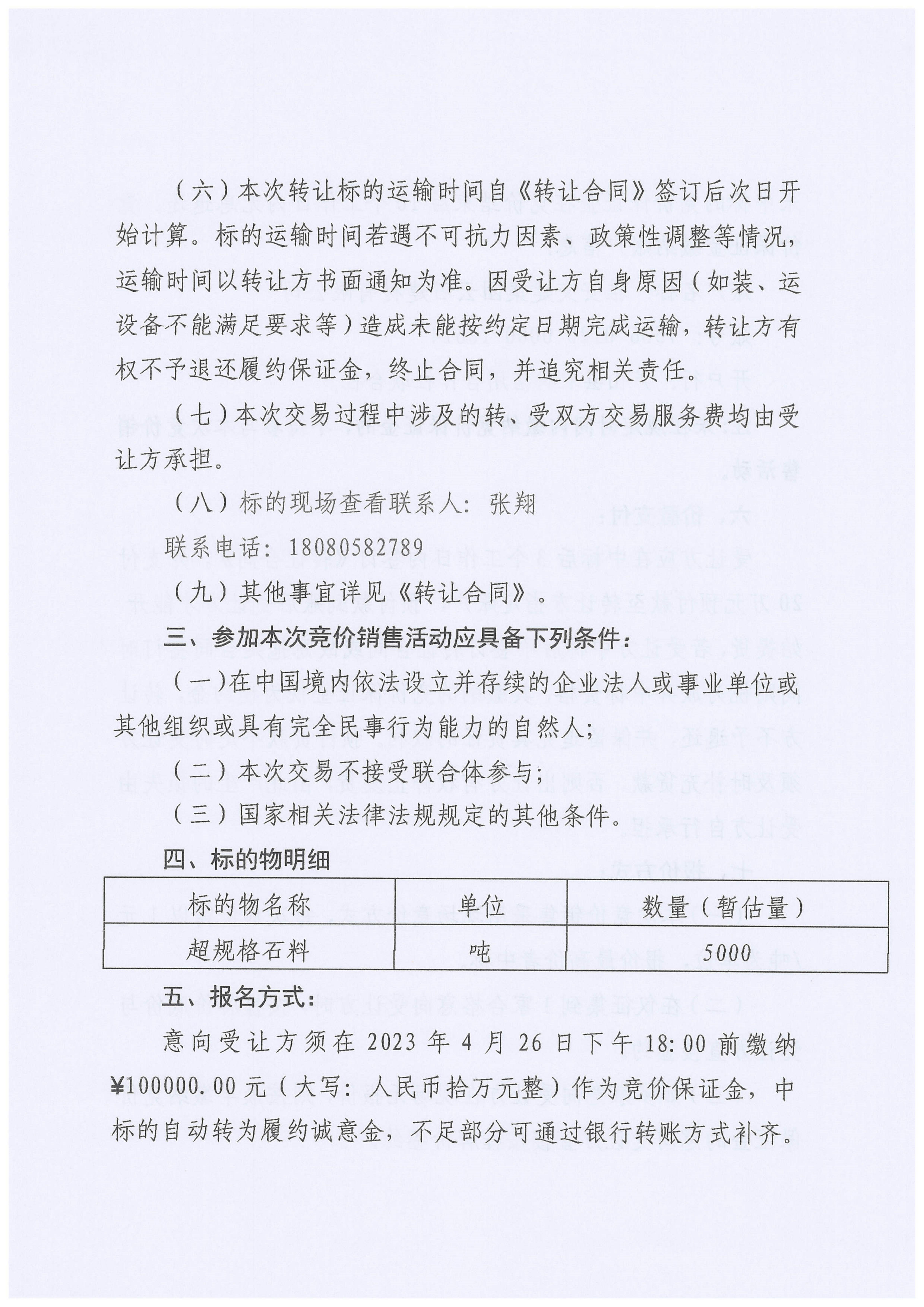 雅交建云石建材有限公司超規(guī)格石料競價銷售公告(2023-4-24)