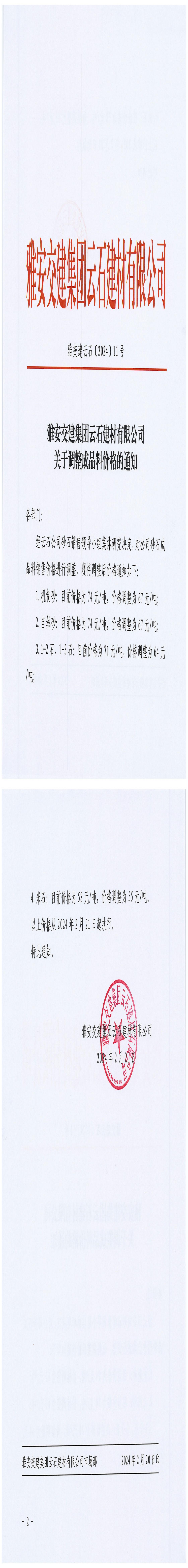 ÑŰ²½»½¨¼¯ˆFÔÆÊ¯½¨²ÄÓÐÏÞ¹«Ë¾³ÉÆ·Áσr¸ñÕ{Õû¹«¸æ£¨2024-2-21£©