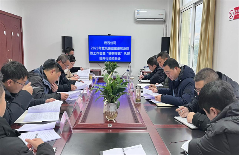 2月16日云石公司召開2023年黨風(fēng)廉政建設(shè)和反腐敗工作會暨“轉(zhuǎn)作風(fēng)、樹新風(fēng)、作表率、抓落實”鞏固提升行動動員會。會議傳達學(xué)習(xí)中央、省、市紀委全會精神和市交建集團2023年黨風(fēng)廉政建設(shè)和反腐敗工作會、“轉(zhuǎn)作風(fēng)、樹新風(fēng)、作表率、抓落實”鞏固提升行動動員會精神,進行鞏固提升行動動員。